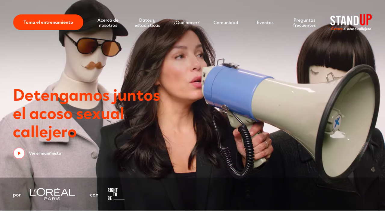 Bajo el lema «Detengamos juntos el acoso sexual callejero» llega al país con ayuda de la ONG ayuda en acción.  Stand UP un movimiento líder en erradicar el acoso, desarrollado por L’Oreal Paris y Right To Be el cual tiene como objetivo capacitar a las personas en el mundo con la metodología de las 5D’s, (Dirigirse al acosador, Distraer, Delegar, Documentar, Desahogar) 5 acciones sencillas que buscan guiar a las personas acerca de como actuar cuando son testigos de acoso callejero.